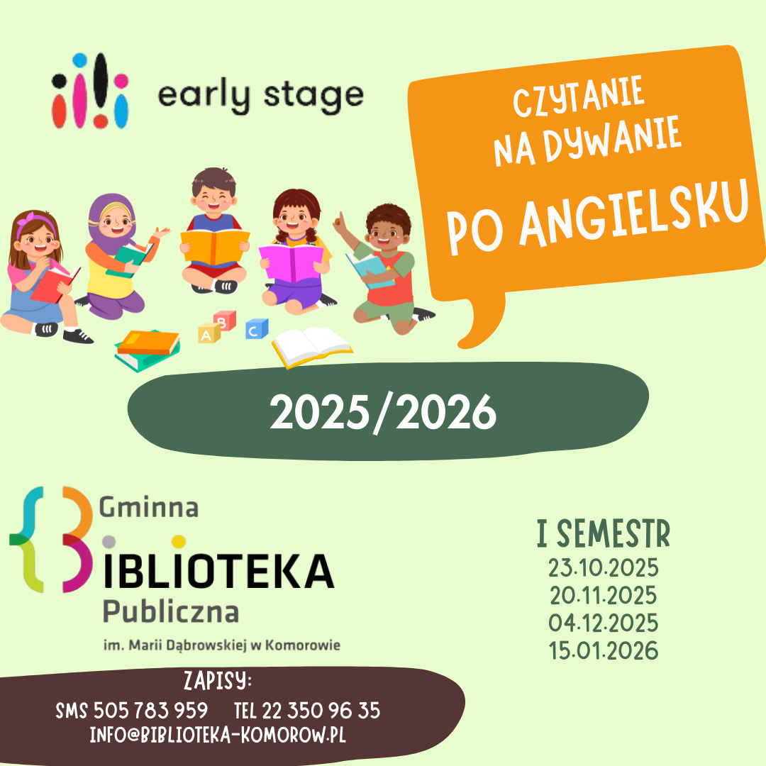 Zajęcia organizowane we współpracy ze szkołą językową Early Stage, dla dzieci w wieku 3-6 lat. Na każdym spotkaniu towarzyszy nam inna książeczka oraz mnóstwo gier i zabaw językowych; dzieci wykonują też projekt plastyczny. Zapraszamy do udziału w konkursie; odbierz zakładkę do książki od lektora prowadzącego wydarzenie, zbierz minimum 5 naklejek za uczestnictwo w spotkaniach i odbierz książeczkę.