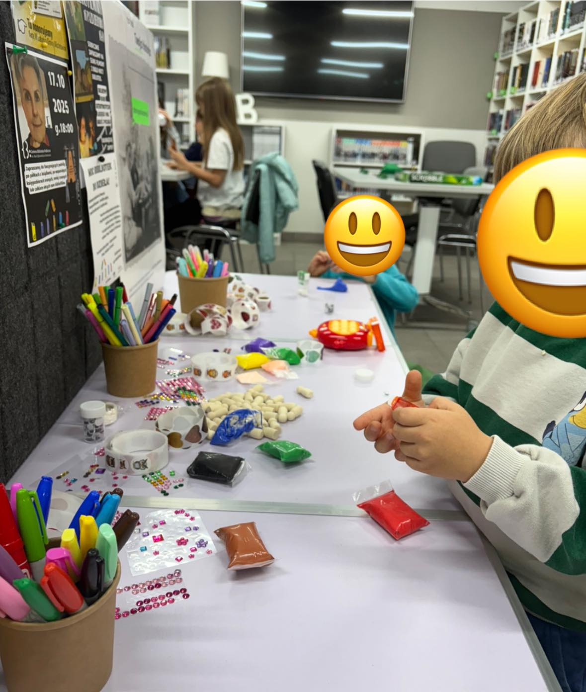 Po zakończonych rozgrywkach i wyłonieniu zwycięzców dzieci mogły wziąć udział w kreatywnych warsztatach, podczas których wykonały swoje własne pionki do gry – kolorowe, oryginalne i jedyne w swoim rodzaju!