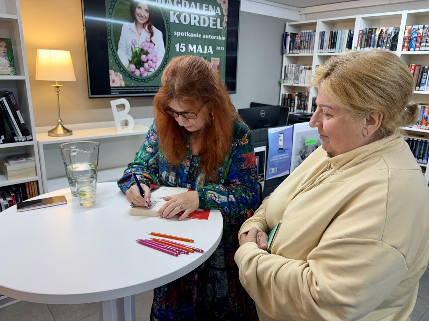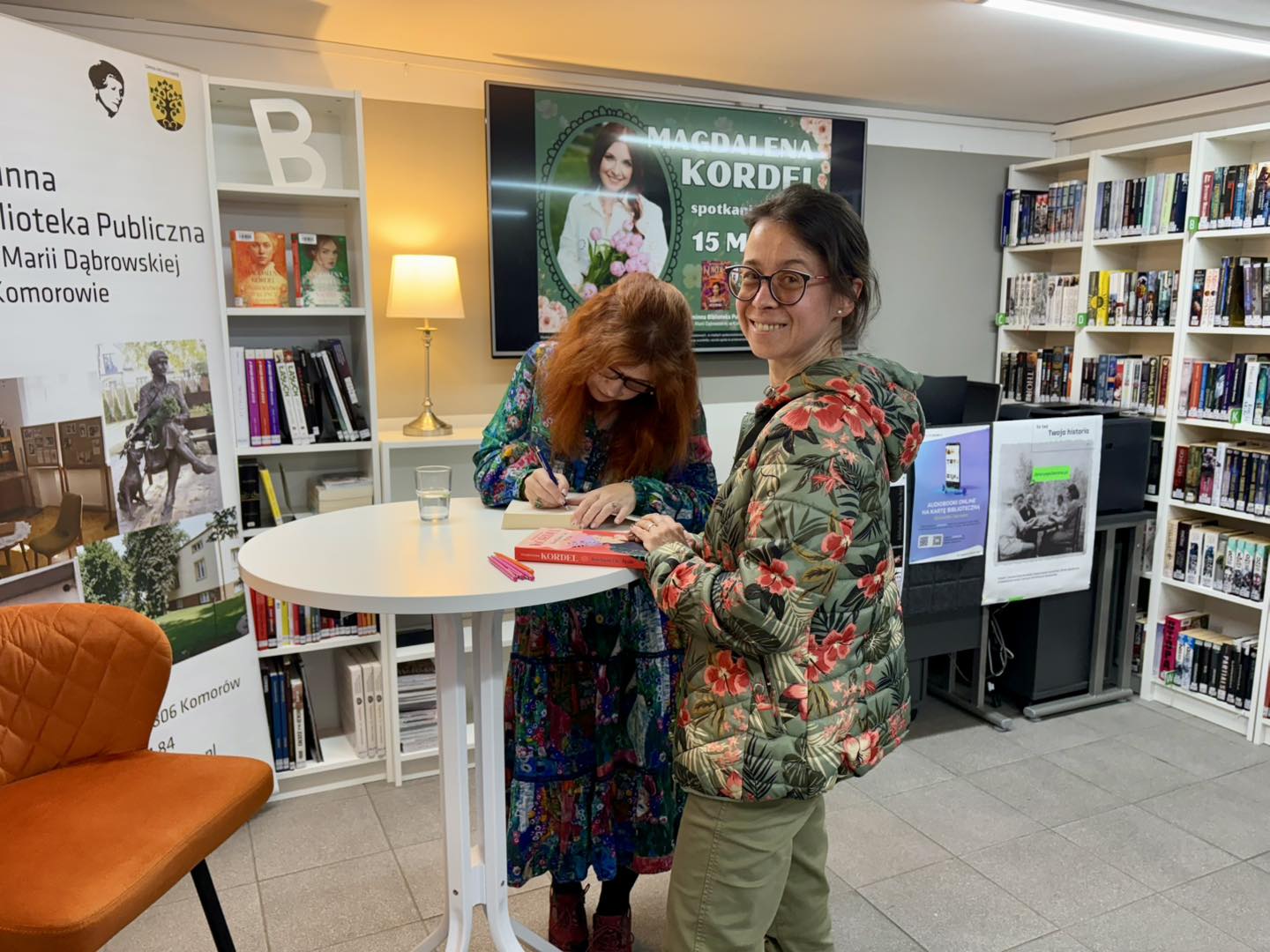 Zakończenie Tygodnia Bibliotek z wielkim przytupem! Mieliśmy ogromną przyjemność gościć w naszej bibliotece Magdalenę Kordel – autorkę uwielbianych powieści obyczajowych, której książki od lat cieszą się niesłabnącą popularnością wśród naszych czytelników. Tym samym w wyjątkowy sposób zakończyliśmy obchody Tygodnia Bibliotek! Spotkanie poprowadziła nasza Pani Dyrektor, a atmosfera była niezwykle ciepła, serdeczna i... niemal jak na spotkaniu przy kawie z przyjaciółką! Nasze czytelniczki miały mnóstwo pytań do Pani Magdaleny – o bohaterów, inspiracje, tło powieści, a także kulisy jej pisarskiego warsztatu. Nie zabrakło też zapowiedzi nadchodzących nowości, które już niebawem pojawią się na księgarnianych półkach! Dziękujemy serdecznie wszystkim uczestnikom za obecność, zaangażowanie i wspólne świętowanie z nami tego wyjątkowego tygodnia. Cieszymy się, że mogliśmy zakończyć go w tak wyjątkowy sposób – pełen inspiracji, emocji i książkowych rozmów.