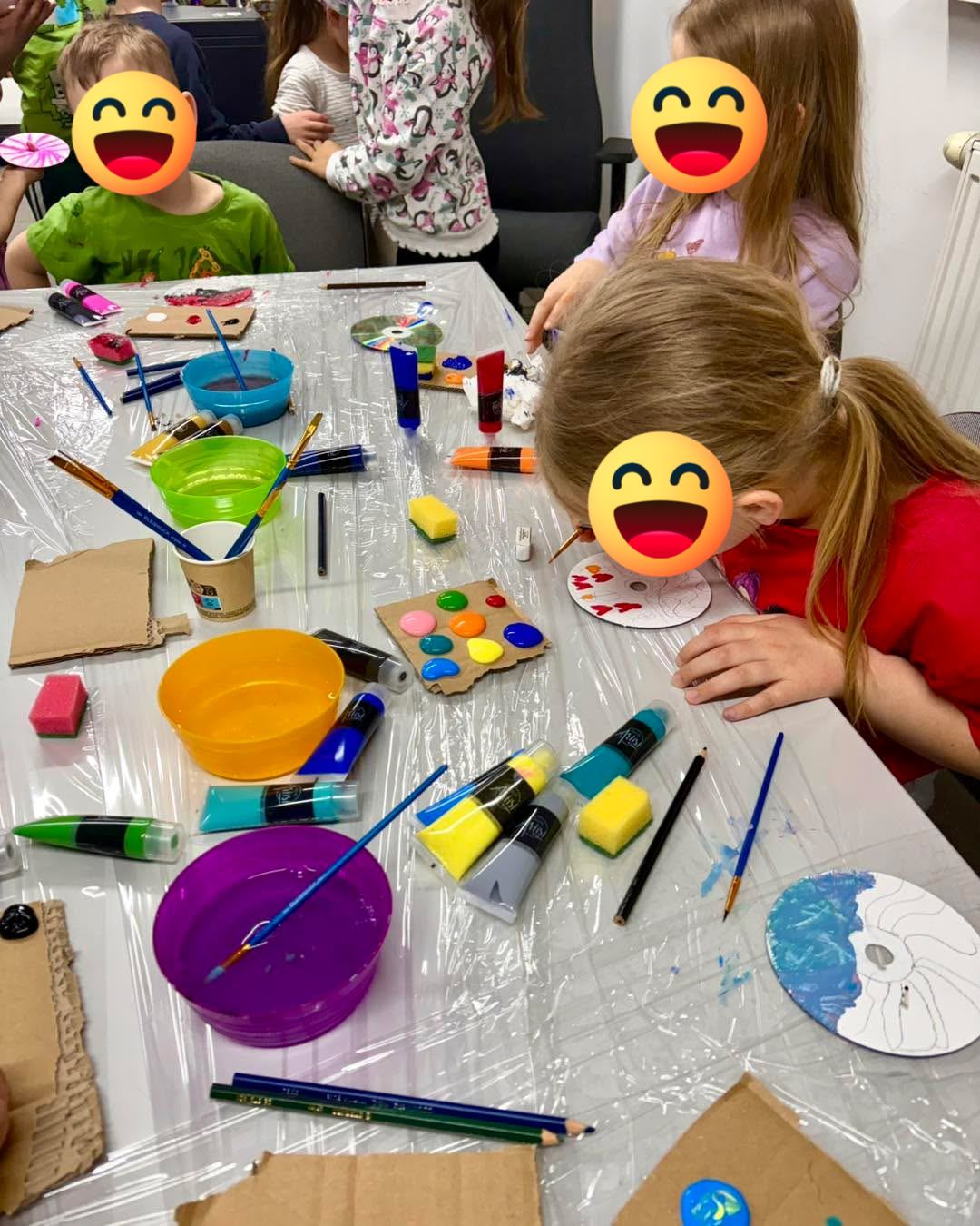 W naszej bibliotece odbyły się kolejne warsztaty w ramach cyklu Eko-Sztuka. Tym razem głównymi bohaterami spotkania były… stare płyty CD! Zanim zabraliśmy się do pracy twórczej, porozmawialiśmy chwilę o ekologii – o tym, jak każdy z nas może dbać o planetę, ograniczać odpady i dawać drugie życie różnym przedmiotom. Po tej rozmowie dzieci zamieniły niepotrzebne już płyty w prawdziwe małe dzieła sztuki. Malowały na nich kolorowe obrazy. Efekty przerosły nasze oczekiwania – obrazy wyszły naprawdę piękne! Dziękujemy wszystkim młodym artystom za wspaniałą atmosferę i ogrom zaangażowania