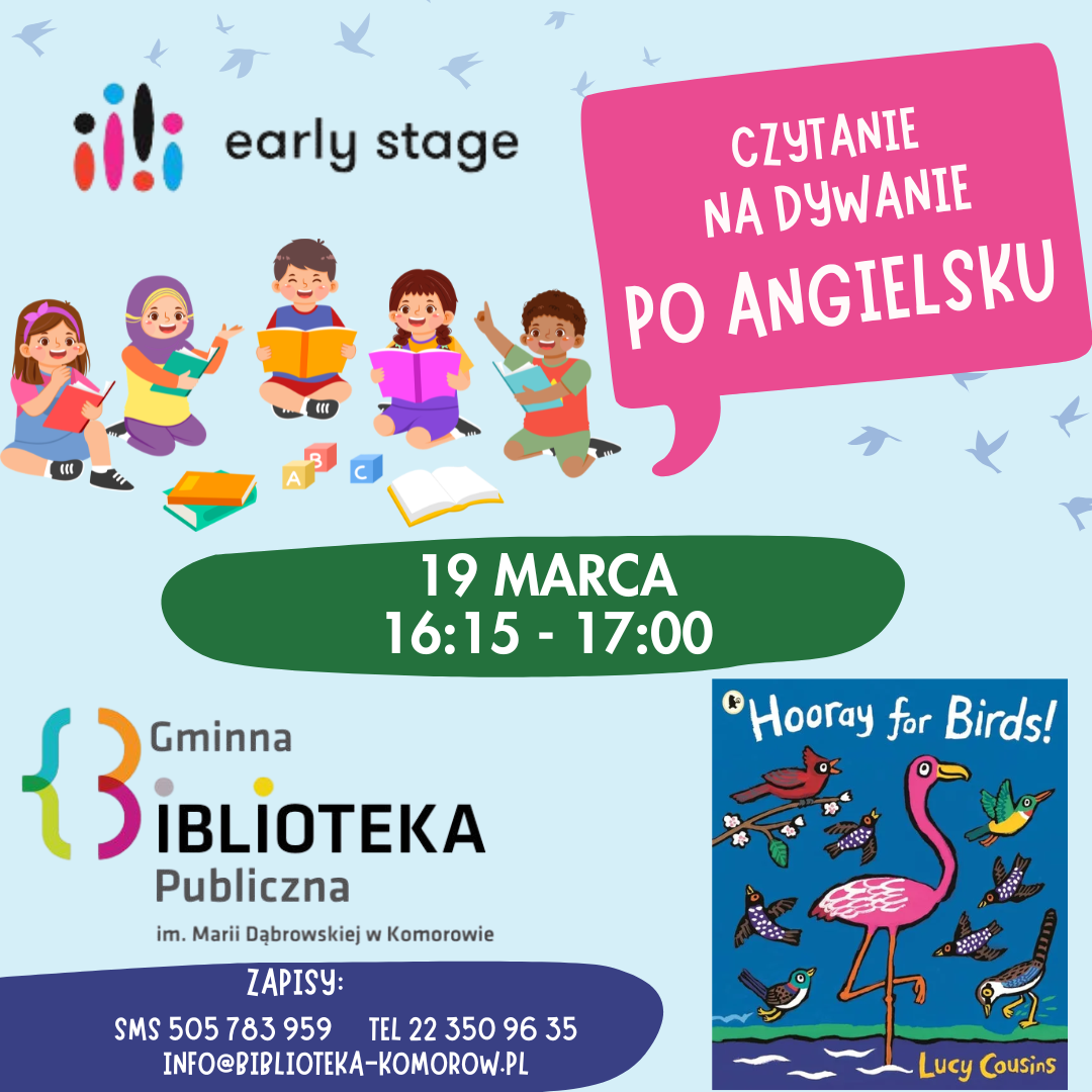 Bezpłatne warsztaty: "Czytanie na dywanie po angielsku", 19.03 godz.16.15-17:00!