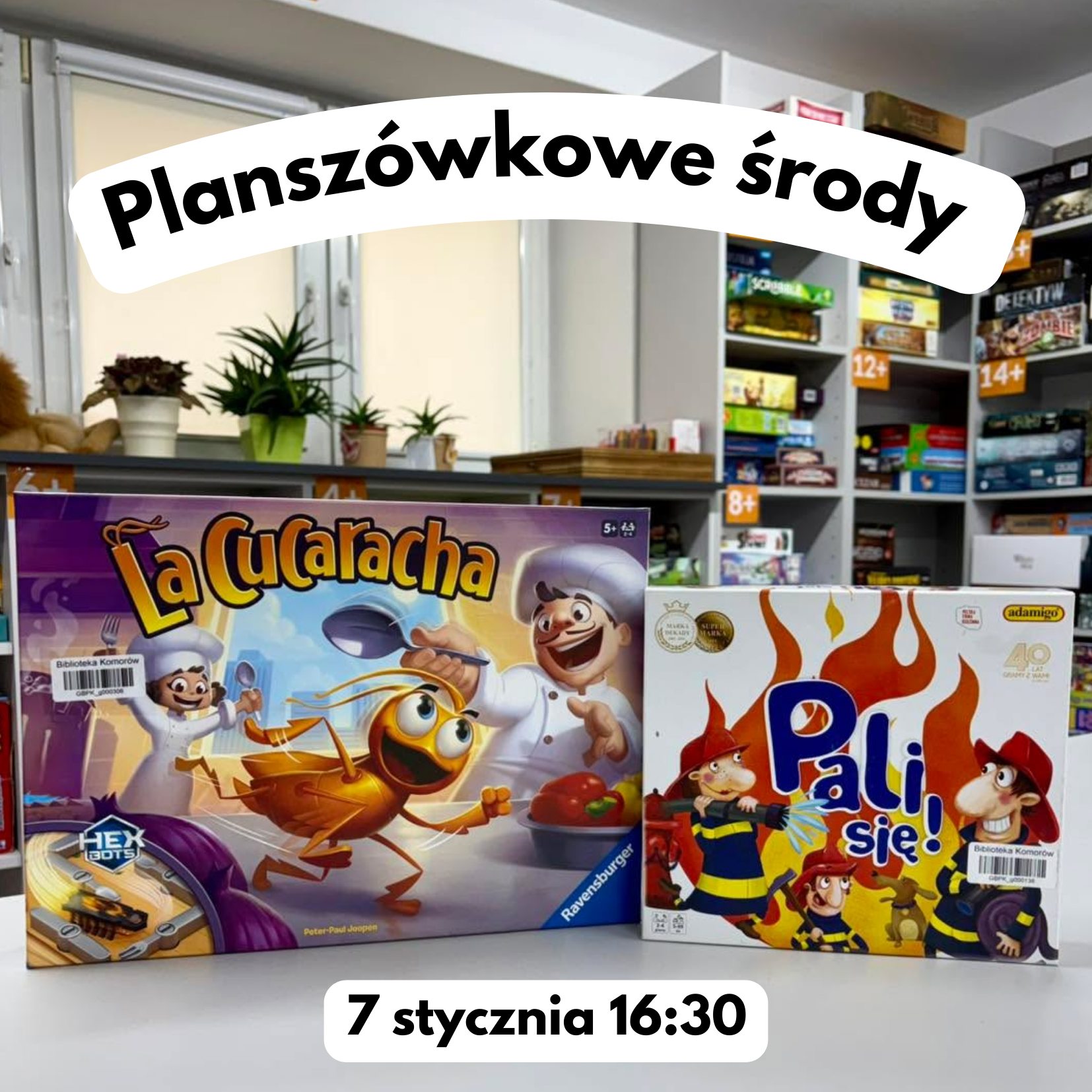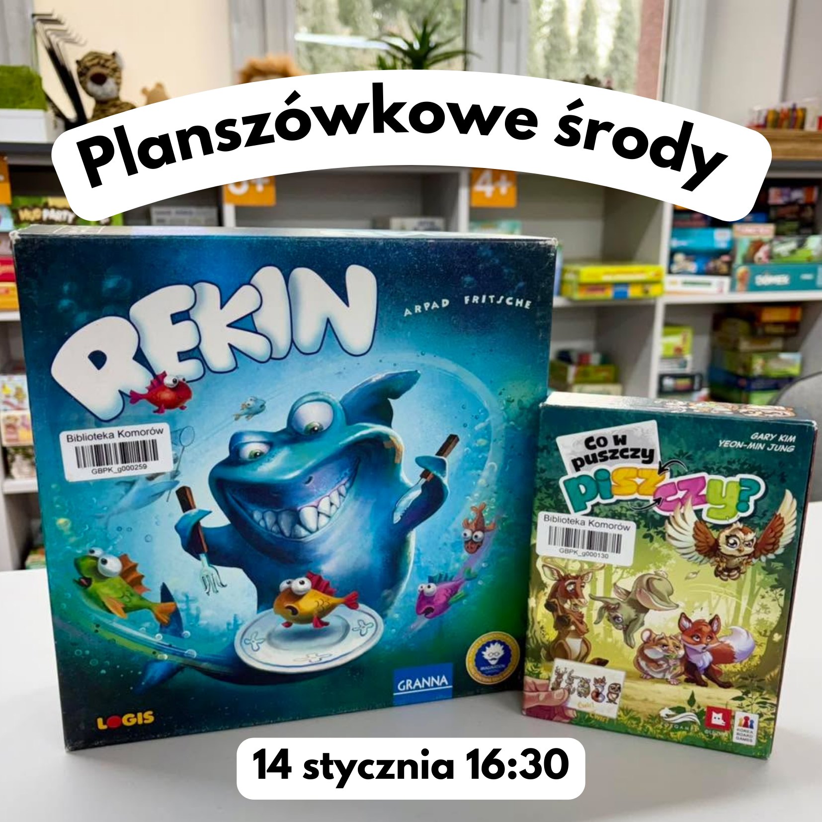 Zapraszamy na wyjątkowe spotkania w każdą środę o 16:30, podczas których wspólnie spędzimy czas przy grach planszowych! Dla najmłodszych przygotowaliśmy mnóstwo radosnych gier, które rozweselą i pobudzą wyobraźnię, a dla starszych – wymagające wyzwania, które sprawdzą strategię i spryt!